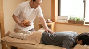 按手法による血流促進施術を開始します。根本的な体質サポートに向けて継続的に取り組み、お身体の変化を随時お伝えしながら施術方針を調整します。