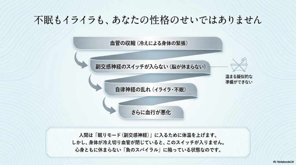 実は、その「冷え」や「イライラ」「眠りの浅さ」には、身体が必死にあなたを守ろうとしている明確な理由があるのです。