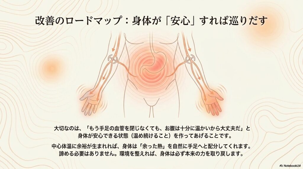 改善へのロードマップ:身体が「安心」すれば巡りだす