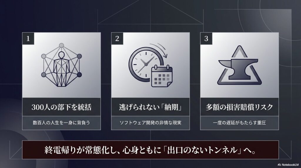 当時のマネジメント環境は非常に厳しく、部長という職責でなく、マネージャーの立場は数十人、数百人のスタッフの人生とプロジェクトの成否を一身に背負う、まさに「重責」という言葉が相応しいものでした。